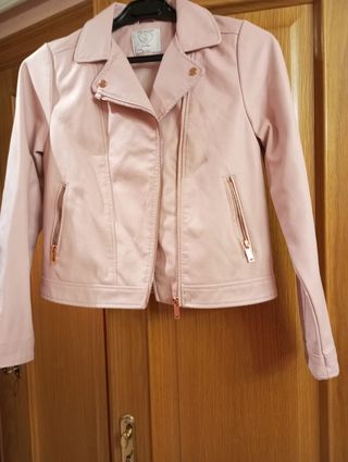cazadora BIKER Primark, rosa polipiel, contorno 86 cm , largo total 49 cm ,y manga 34 cm ancho y 58 cm largo, talla XS nueva