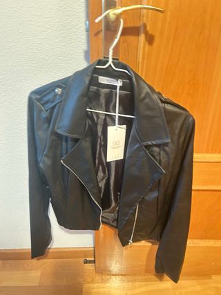 Cazadora polipiel negra,puesta dos veces está nueva la talla es xs , la cazadora costó 50€