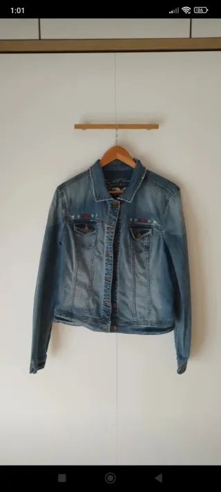 Cazadora vaquera mujer en talla M de la marca Denim life. De corte recto, puños con botones y cuello camisero. Está muy bien.