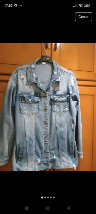 Cazadora vaquera mujer. Llega a la cintura. Es elástica. Tallas 36/42. La 42 va más justa.