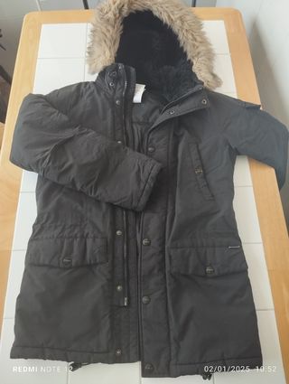 Cazadora acolchada con capucha, en la etiqueta la talla es 38, pero en realidad es una talla S.