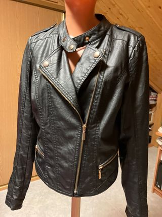 cazadora de niña imitación a cuero, un uso nada más esta arrugada de estar guardada... muy bonita y muy buen Estado... talla 10 años