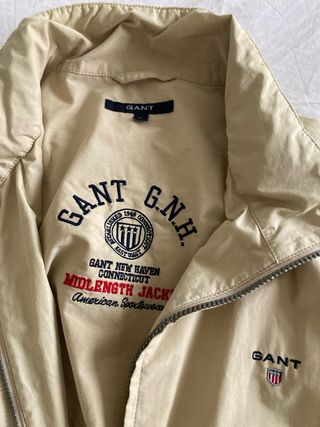 Cazadora de la marca GANT en color beige. Un clásico versátil. - Cierre de cremallera. - Cuello alto. - Bolsillos frontales.