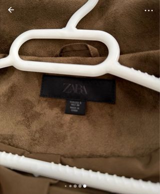 Cazadora de Zara con capucha y detalle de cordón en la cintura. - Cierre de botones. - Bolsillos delanteros con solapa. - Tejido tipo ante.