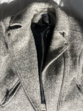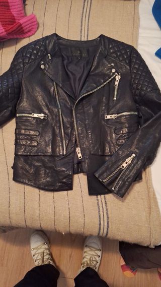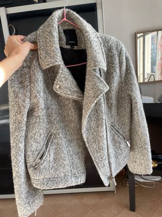 Cazadora estilo biker abrigadora. Con solo 2 usos. Es muy bonita , la verdad se ve super linda puesta. La vendi solo porque me voy a vivir a un clima muy caluroso. - Diseño con cremalleras. - Cuello solapa. - Tejido texturizado.