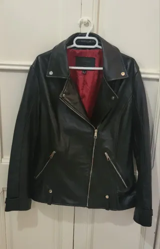 Cazadora estilo biker, a estrenar. - Diseño moderno y versátil. - Cierre de cremallera. - Bolsillos con cremallera. - Detalle de solapas. - Material suave al tacto.