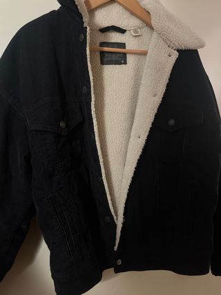 Cazadora tejana con forro interior y cuello de borreguito, de Mango, talla L, en perfecto estado.
