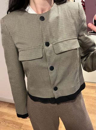 Cazadora corta cuadros beige y negra