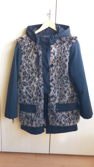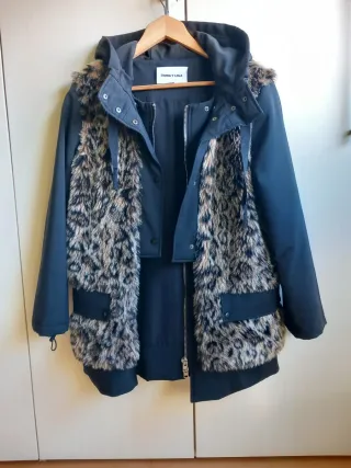 Cazadora de la marca Bimba y Lola con un diseño llamativo. - Detalle de pelo sintético con estampado animal. - Capucha. - Cierre de cremallera.