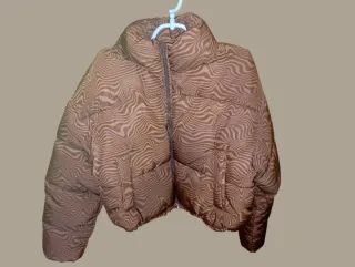 Cazadora corta con un diseño acolchado y estampado llamativo. - Corte crop. - Estampado ondulado en tonos marrones y beige. - Cuello alto.