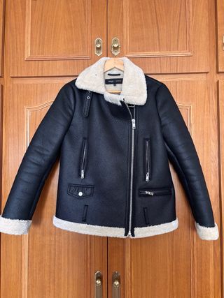 Cazadora de estilo aviador con acabado efecto piel y forro interior de borreguito. - Cuello de borreguito. - Cierre de cremallera. - Bolsillos con cremallera y solapa.