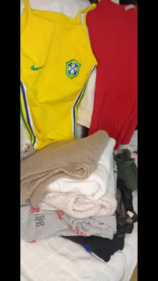 Lote de 18 prendas de ropa de mujer, incluyendo cazadoras y jerséis. - Variedad de estilos y tallas. - Ideal para renovar tu armario.