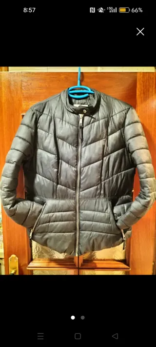 Cazadora de mujer con muy poco uso. - Diseño acolchado. - Capucha integrada. - Cierre de cremallera frontal.