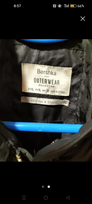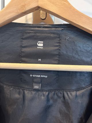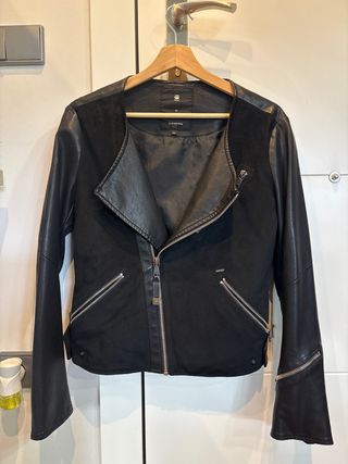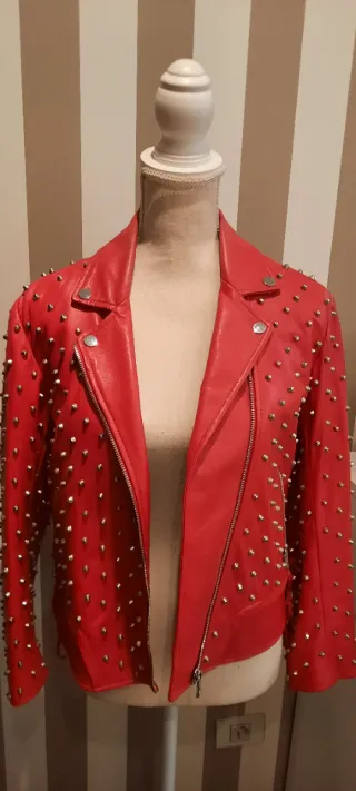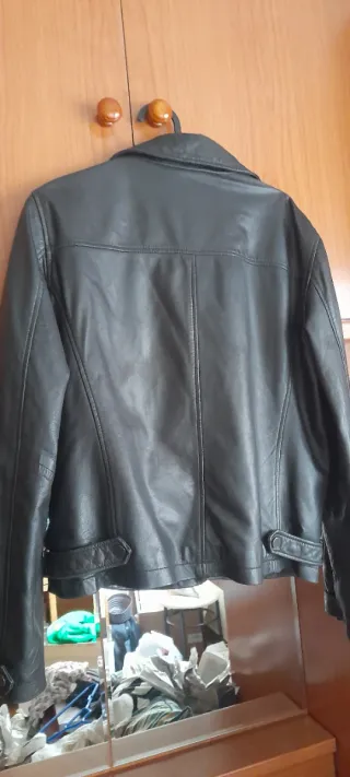 Cazadora de efecto piel con un diseño moderno. - Cierre de cremallera frontal. - Bolsillos laterales. - Cuello clásico. - Es una S pero talla mas como xs, es estrecha para S