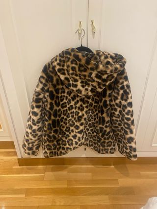 Cazadora corta de pelo con un llamativo estampado de leopardo. Es una prenda muy suave y calentita. - Diseño corto. - Tacto muy agradable. - Cierre de cremallera.No se envia se recoge en Gijon