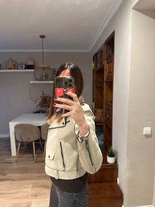 Cazadora biker de piel nueva Marca uterque Talla L Pvp 450 No hago reservas Zara.mango.bimba y lola.oysho.pedro del hierro.roberto verino.guess.hoss intropia.massimo dutti.cuple.purificacion García.parfois.sfera.stradivarius.pull and bear.