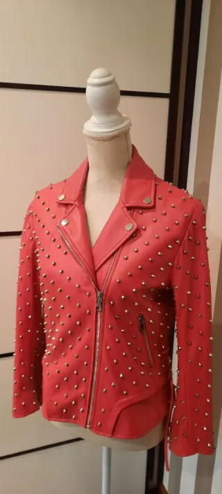 Cazadora de mujer en color coral, de ONLY, talla 40. Nueva. Tiene en el interior un pequeño defecto en la polipiel en el interior, que no se ve en su uso,(última foto)