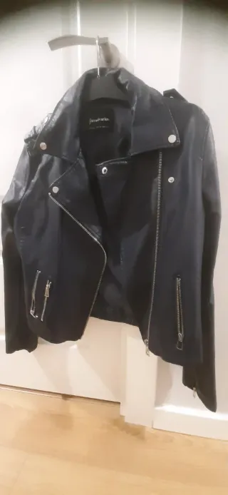 Cazadora cuero Stradivarius azul