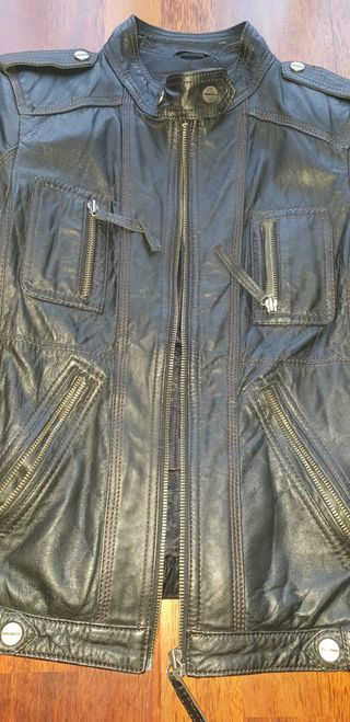 Cazadora con cremalleras, ajustada y por la cintura . Talla M