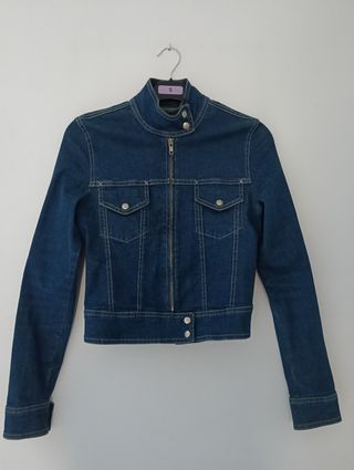 Cazadora vaquera y ajustada con cuello mao de Bershka talla 38 En perfecto estado, sin desperfectos 98% algodón y 2% elastano