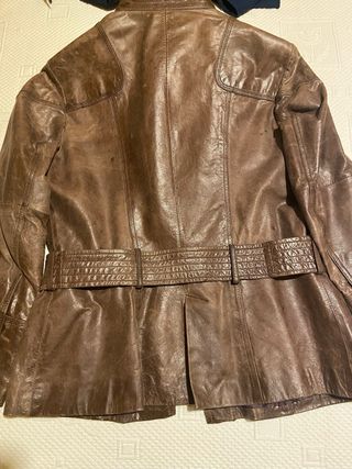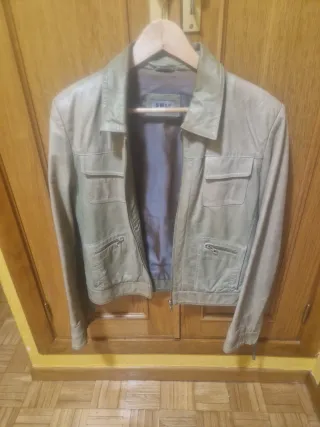 Cazadora de cuero con un diseño clásico y versátil. - Cierre de cremallera frontal. - Dos bolsillos superiores con solapa. - Dos bolsillos inferiores con cremallera. - Forro interior. Talla 44