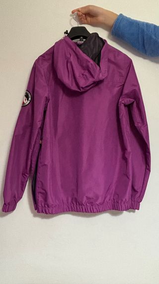 Cazadora anorak con capucha y cremallera frontal. - Bolsillo canguro con solapa. - Puños y cintura elásticos. - Logo de la marca en el pecho.