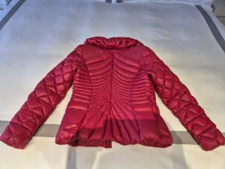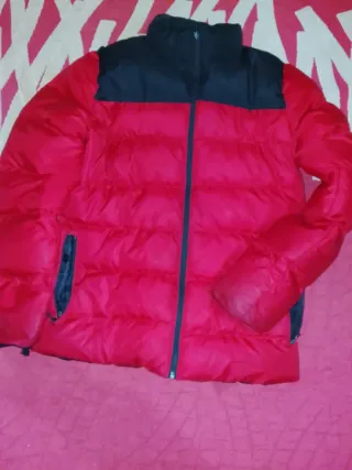 Cazadora acolchada de color rojo con un bonito estampado. Solo se ha puesto un par de veces. - Diseño acolchado. - Estampado en la prenda. - Cierre de cremallera frontal. - Bolsillos laterales con cremallera.