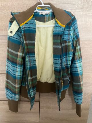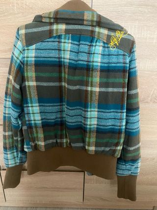 Cazadora de cuadros de la marca Rip Curl. - Diseño a cuadros en tonos azules y marrones. - Cuello alto con detalle. - Cierre de cremallera.