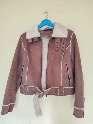 Cazadora estilo biker de la marca Zara. - Diseño con forro de borreguito. - Cierre de cremallera. - Bolsillos frontales.