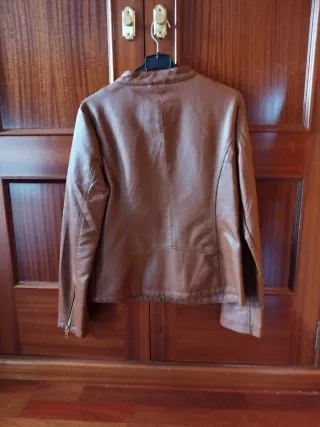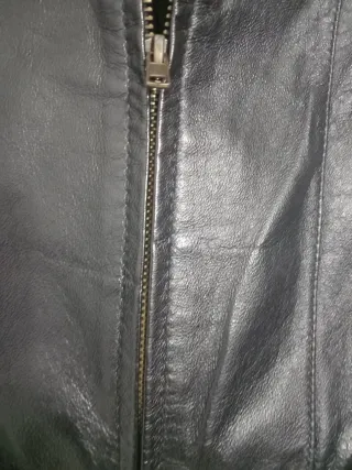 Cazadora Piel Zara. Talla S Tiene marcas de uso, se aprecian en las fotos - Cierre de cremallera frontal. - Cuello redondo con botón a presión. - Detalle de costuras en los hombros.