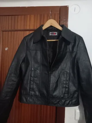 Se vende cazadora de cuero sintetico negra con capucha de quita y pon talla XS. Puesta un par de veces. Esta como nueva como se puede ver en las fotos. Precio: 20€