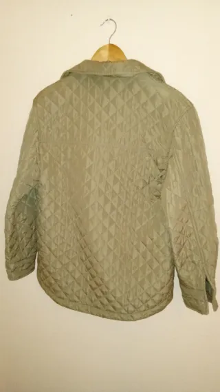 Cazadora acolchada de color verde oliva. Es una prenda versátil y cómoda. - Diseño acolchado con rombos. - Cuello camisero. - Cierre de botones. - Bolsillos frontales. Talla S, pero cale una M también.