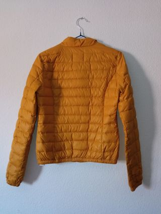 Chaqueta acolchada color mostaza para mujer. Está en buen estado. - Diseño ligero y cómodo. - Cierre de cremallera. - Bolsillos laterales.