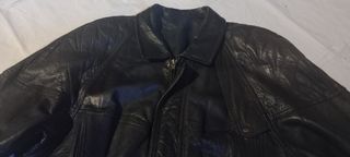 Cazadora de piel de estilo vintage. Un clásico atemporal. - Diseño tipo bomber. - Cierre de cremallera. - Bolsillos frontales con solapa. - Puños y cintura elásticos. Directa de tintorería, no necesita limpieza