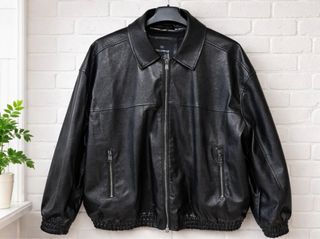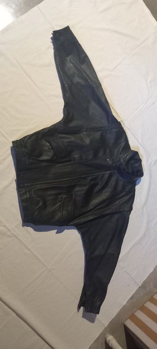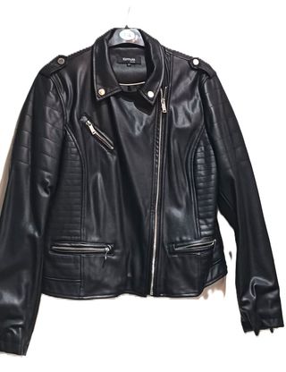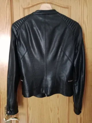 Cazadora de efecto piel en color negro. - Diseño con cremallera frontal. - Bolsillos laterales con cremallera. - Puños y bajo elásticos. Hago envío o entrego en persona en Valencia 🙋🏼♂️📦