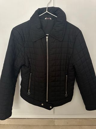 Cazadora corta de la marca Green Coast en color negro. - Diseño acolchado. - Cuello alto. - Cierre de cremallera. - Cordón ajustable en el bajo. precio original: 60€ precio ahora: 8€