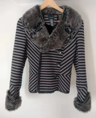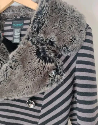 Elegante cazadora de Custo Barcelona con un diseño de rayas único. - Cuello con detalle de pelo sintético. - Puños con pelo sintético. - Cierre cruzado con botones. - Corte entallado.
