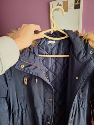 Cazadora de invierno con capucha de pelo sintético, solo venta en mano, no hago envios. - Cierre de cremallera. - Cintura ajustable con cordón. - Bolsillos con solapa en la parte delantera. - Puños elásticos.