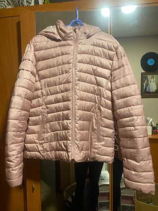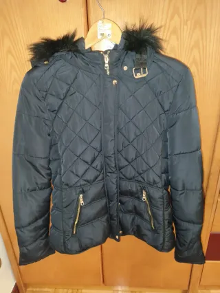 Cazadora acolchada con capucha y detalles de pelo. - Cierre de cremallera. - Bolsillos laterales con solapa. - Cintura ajustable con cordón. - Puños elásticos. - Forro interior de pelo - Muy poco uso