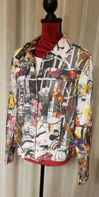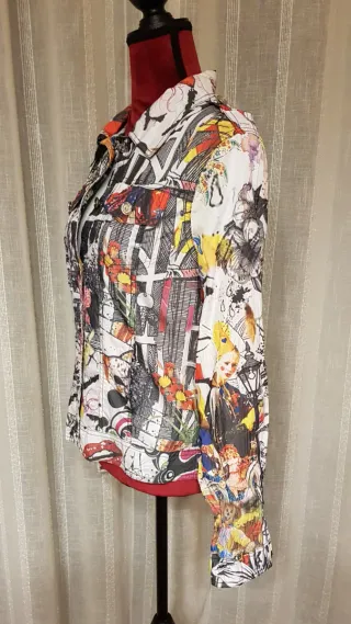 Cazadora con un diseño artístico y vibrante, perfecta para añadir un toque único a tu estilo. - Estampado multicolor sobre fondo blanco. - Cierre de botones. - Bolsillos en el pecho. Sólo venta en pedido mínimo de 60€