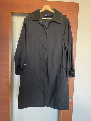 Cazadora larga de Zara con cuello de pana. - Cierre de botones. - Bolsillos delanteros. - Puños ajustables.