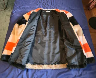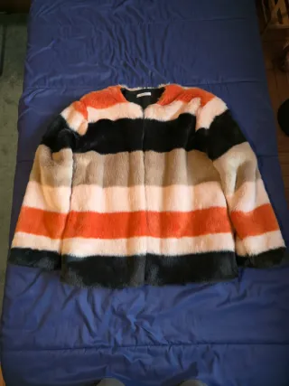 Nunca se ha usado, comprada por capricho. Cazadora de pelo sintético super suave con un diseño de rayas llamativo. - Diseño de rayas horizontales. - Cuello redondo.