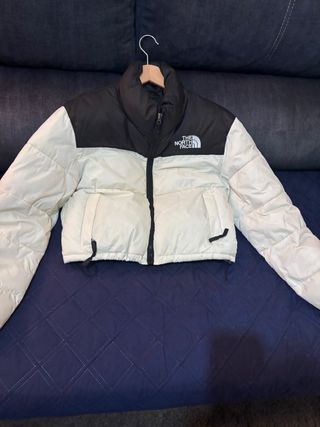 Cazadora acolchada de The North Face con un diseño bicolor. - Parte superior en negro. - Parte inferior en blanco roto. - Cuello alto.
