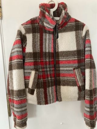 Cazadora de borreguito con estampado de cuadros. - Diseño de cuello alto. - Cierre de cremallera. - Bolsillos laterales.