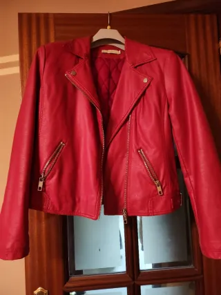 Cazadora roja estilo motero
