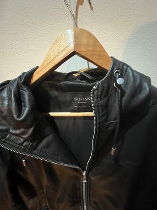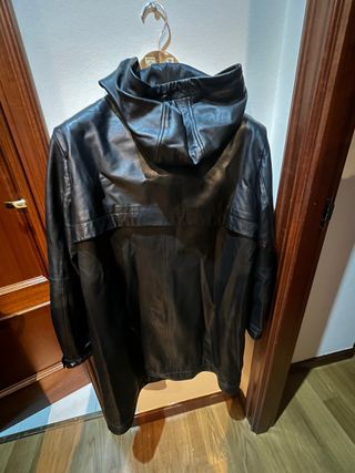 Cazadora Piel Negra Capucha Talla S