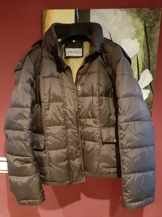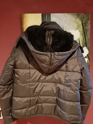 Cazadora de plumón de oca, ideal para el frío. - Marca LINEATRE. - Color marrón. - Talla M (38/10). - Con pelo natural.