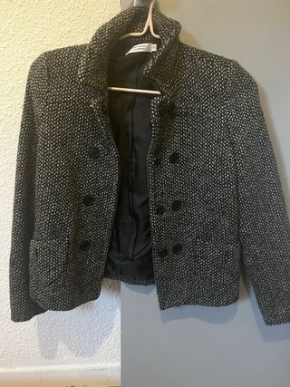 Cazadora de la marca Comptoir des Cotonniers. - Diseño tejido en blanco y negro. - Cierre de botones. - le faltan dos botones interiores de abajo