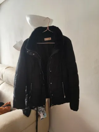 Cazadora de mujer con un diseño moderno y elegante. - Capucha con pelo sintético. - Cremallera frontal. - Bolsillos con cremallera. -esta nueva sin usar Pero quite la etiqueta