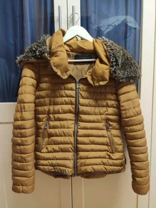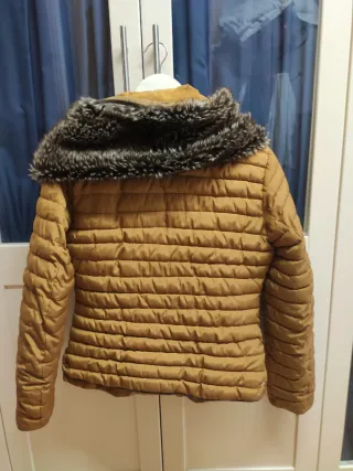 Vendo cazadora mujer, color mostaza, talla M, aunque equivale más a una S, marca Pull&Bear. El pelo de la parte de arriba se puede quitar y poner.